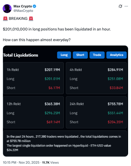 In summary, this week’s plunge appears to be the result of multiple stresses hitting crypto simultaneously. Macro forces took center stage: fading hopes of rate cuts and rising yields induced a broad risk-off environment. That removed the backstop for speculative assets and triggered systematic selling.The net effect is a self-reinforcing cycle: selling begets thinner liquidity, which begets more selling.